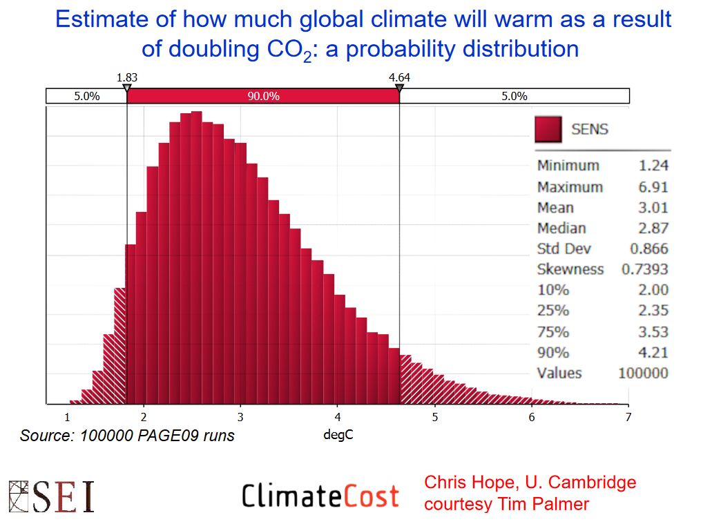 Probability Distribution of Warming by a Doubling of CO2 Levels